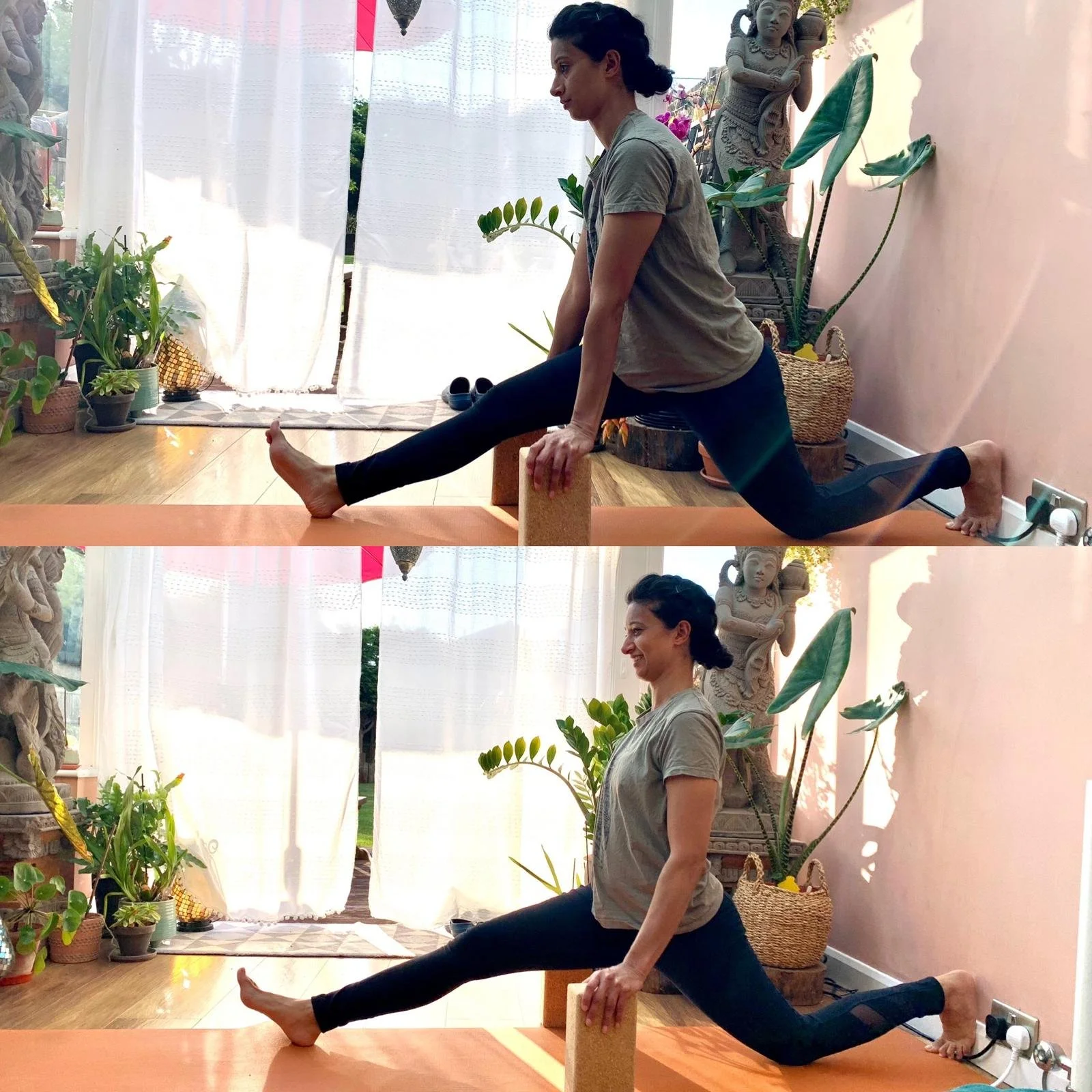 It may mean giving your brain MORE INFO - in terms of brain-body mapping, moving joint rich areas in a complex way (circles, articulating each individual joint in your spine/fingers for example, moving in figure of 8s). These are INPUTS so you are making your INPUTS clearer. You can also improve your inputs by doing visual drills and stimulating your cranial nerves. Seriously, this worked SOOOO very well for my client who is working on her splits. Pic shown below of results in one session.